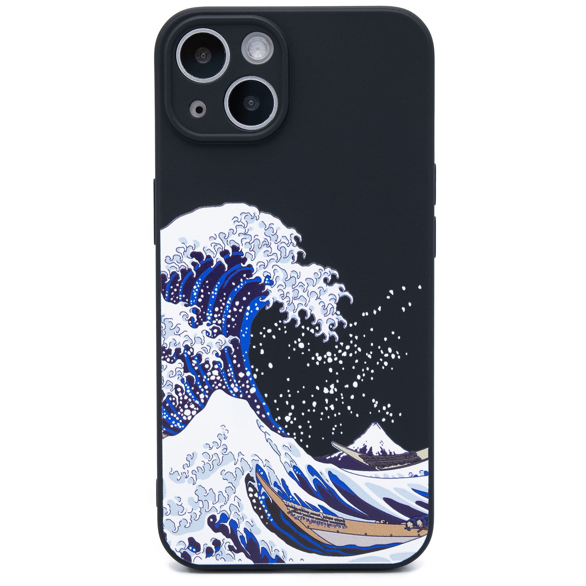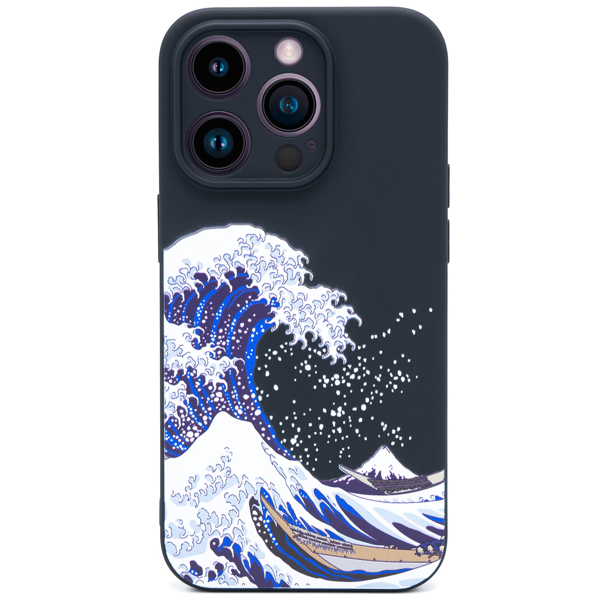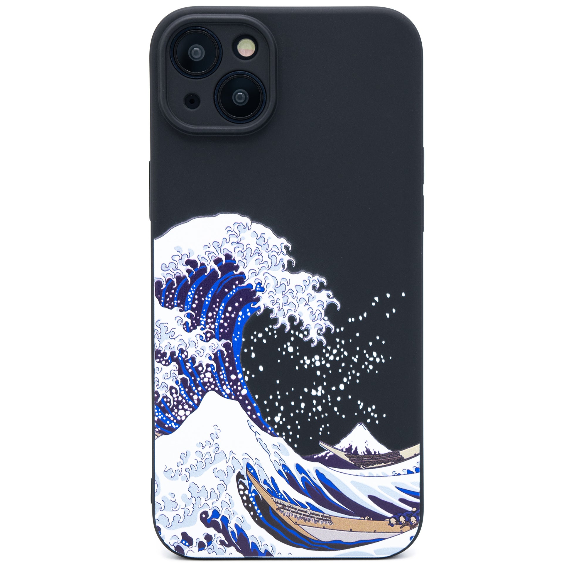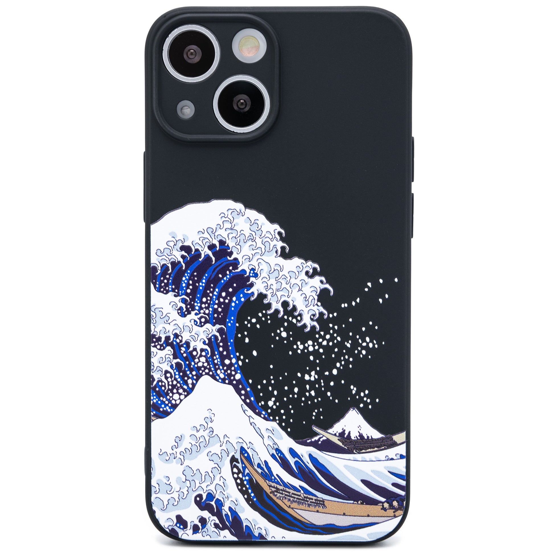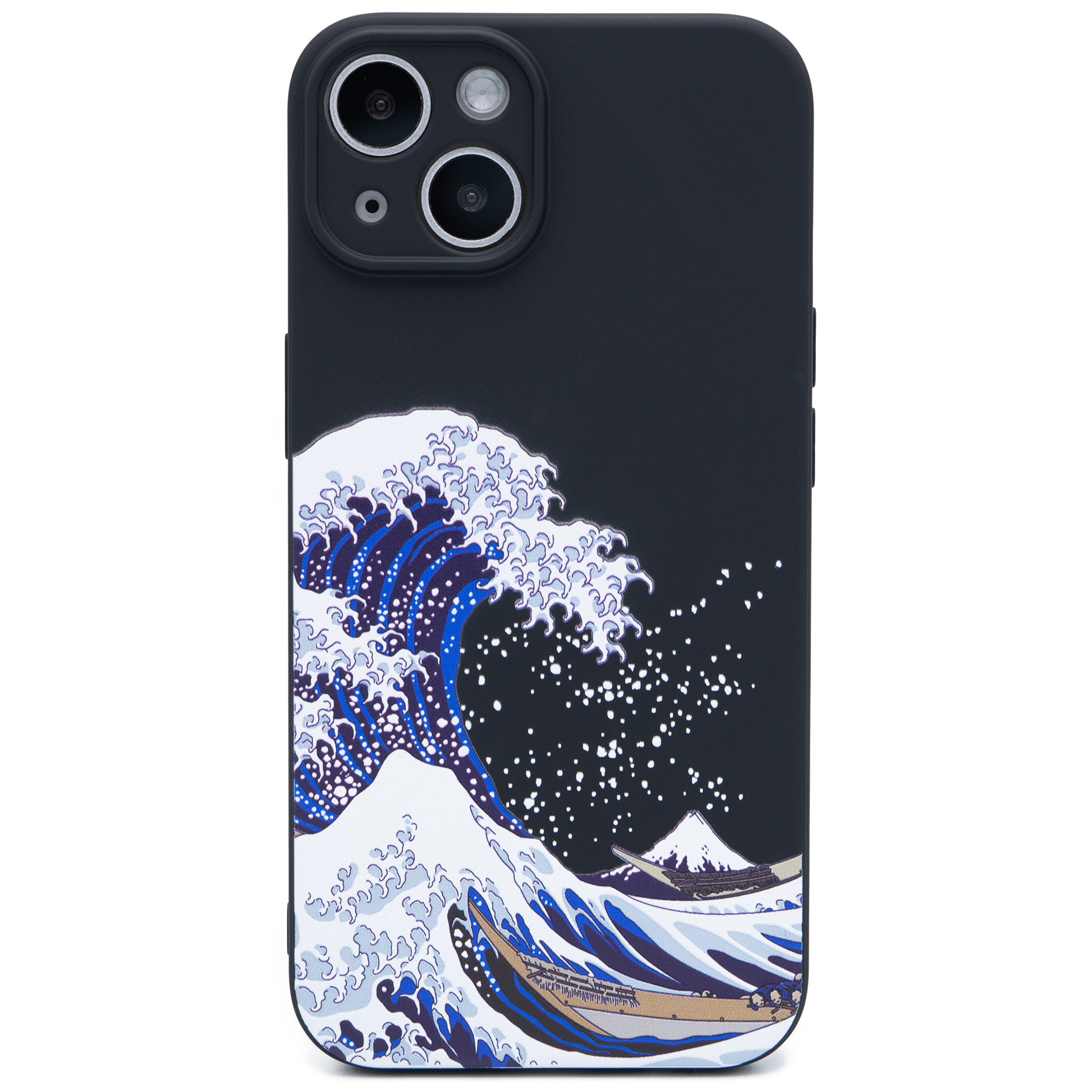 シリコンのような柔らかさながら、ホコリが付きにくいTPU製のソフトケースに葛飾北斎の浮世絵の波が3D立体プリントで表現されています。